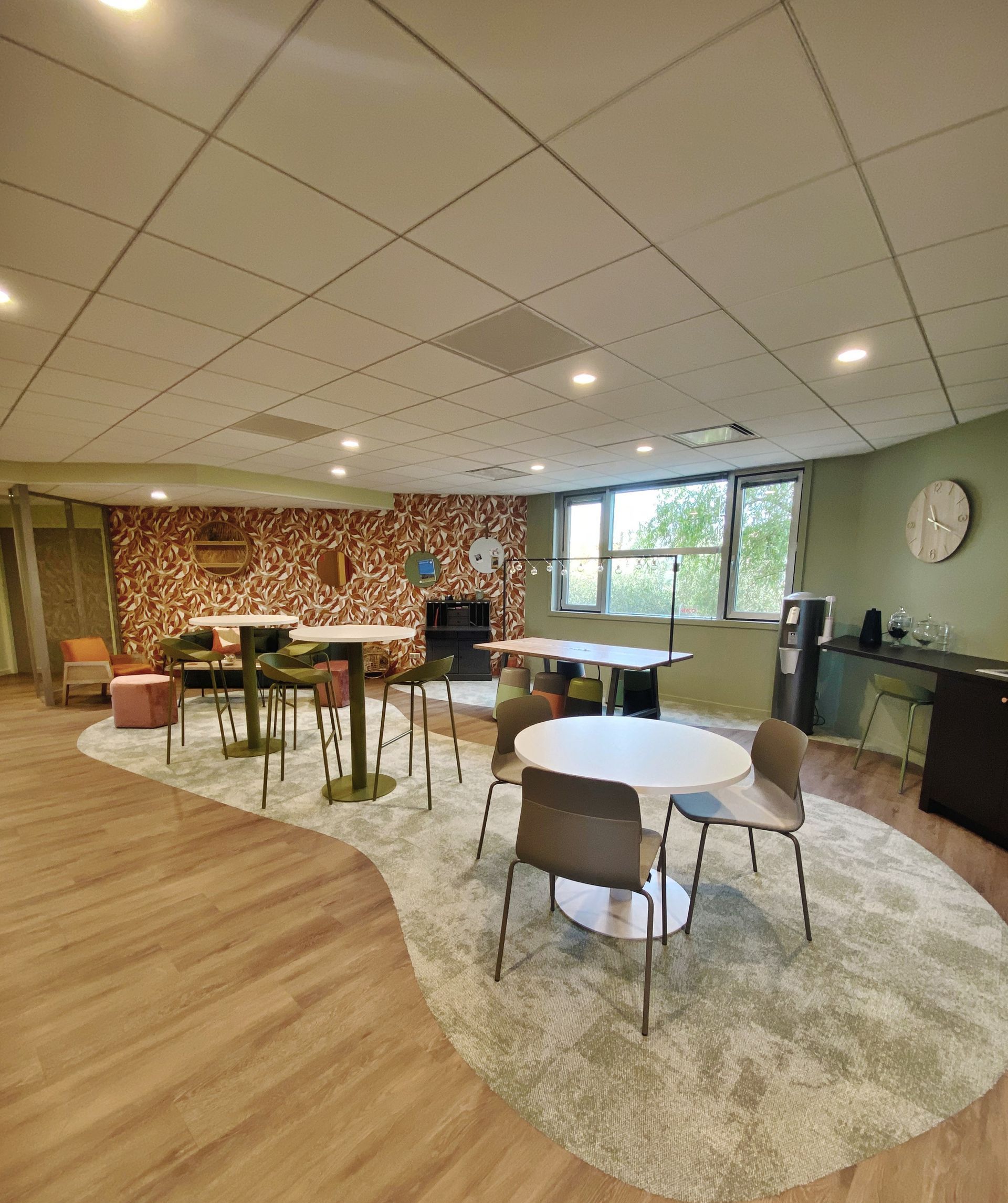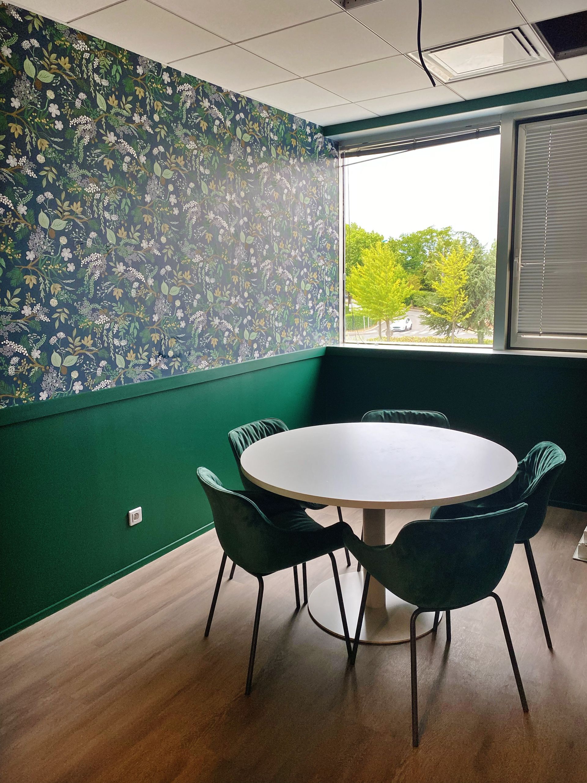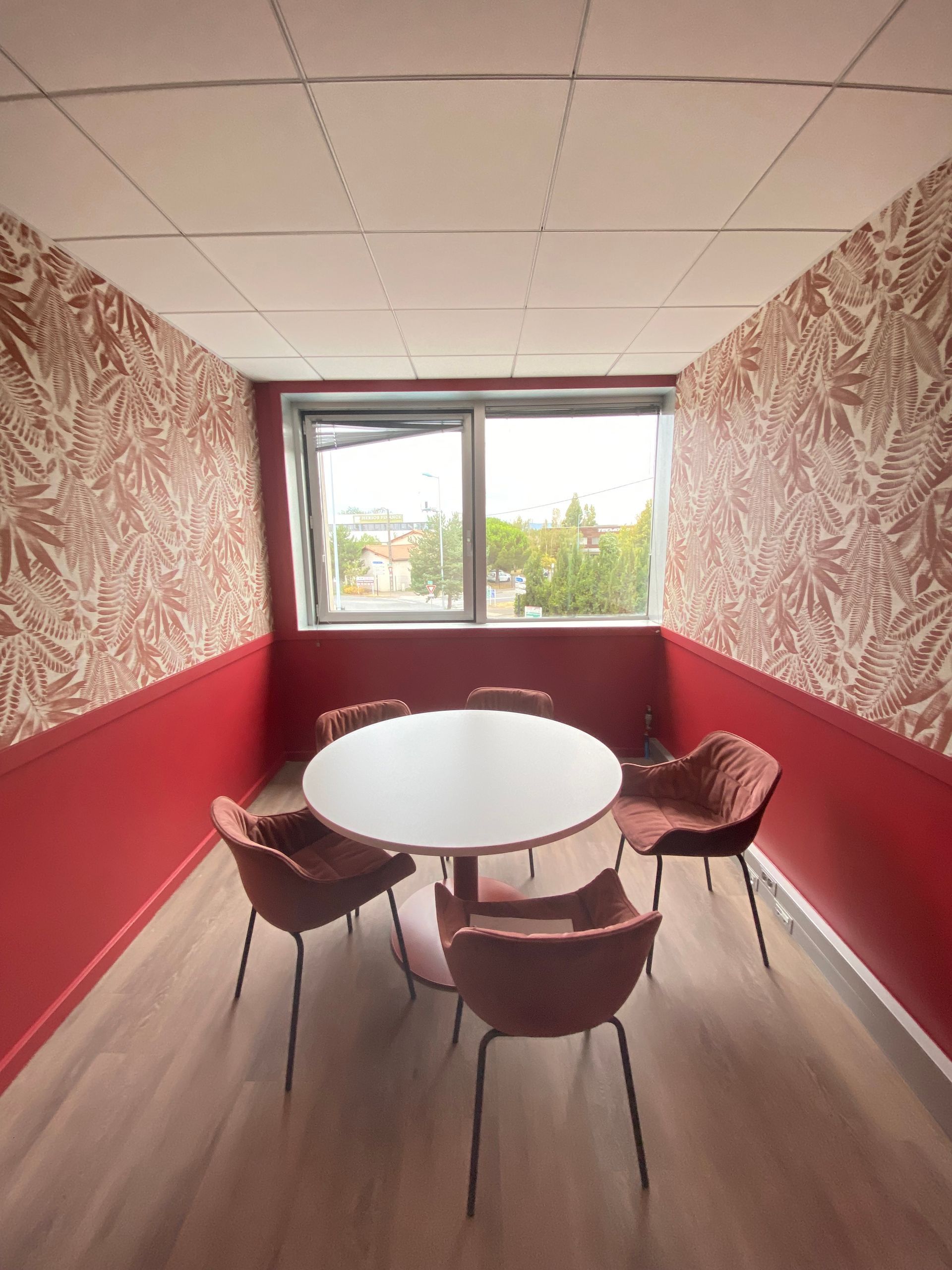 Réalisation des travaux de faux-plafonds, peinture et revêtements muraux pour la réfection des bureaux.