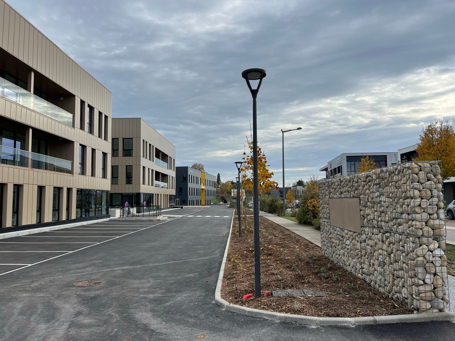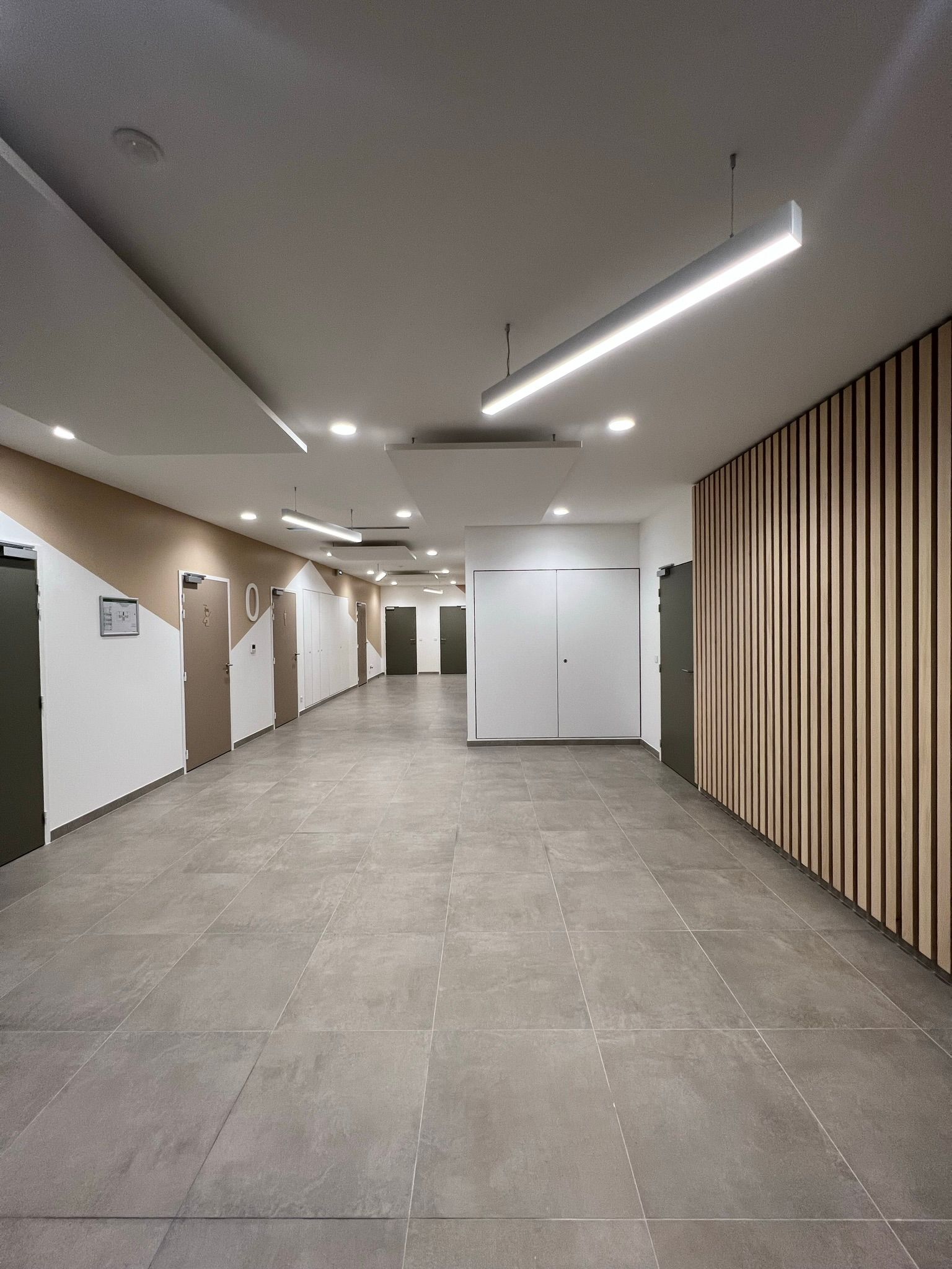 Réalisation des travaux de doublages, cloisons, plafonds suspendus, baffles acoustiques et peinture dans le cadre d’une construction de deux immeubles de bureaux.