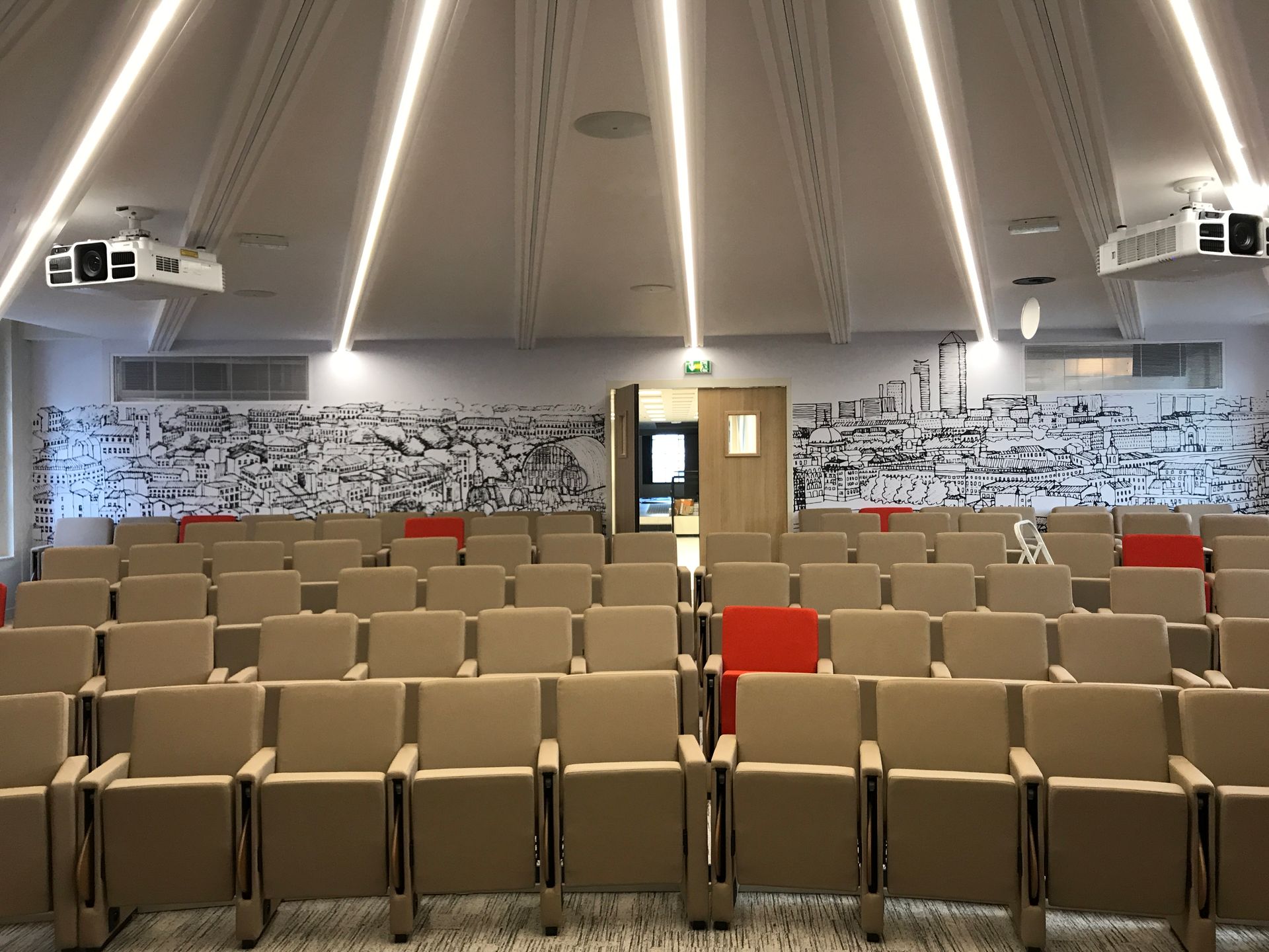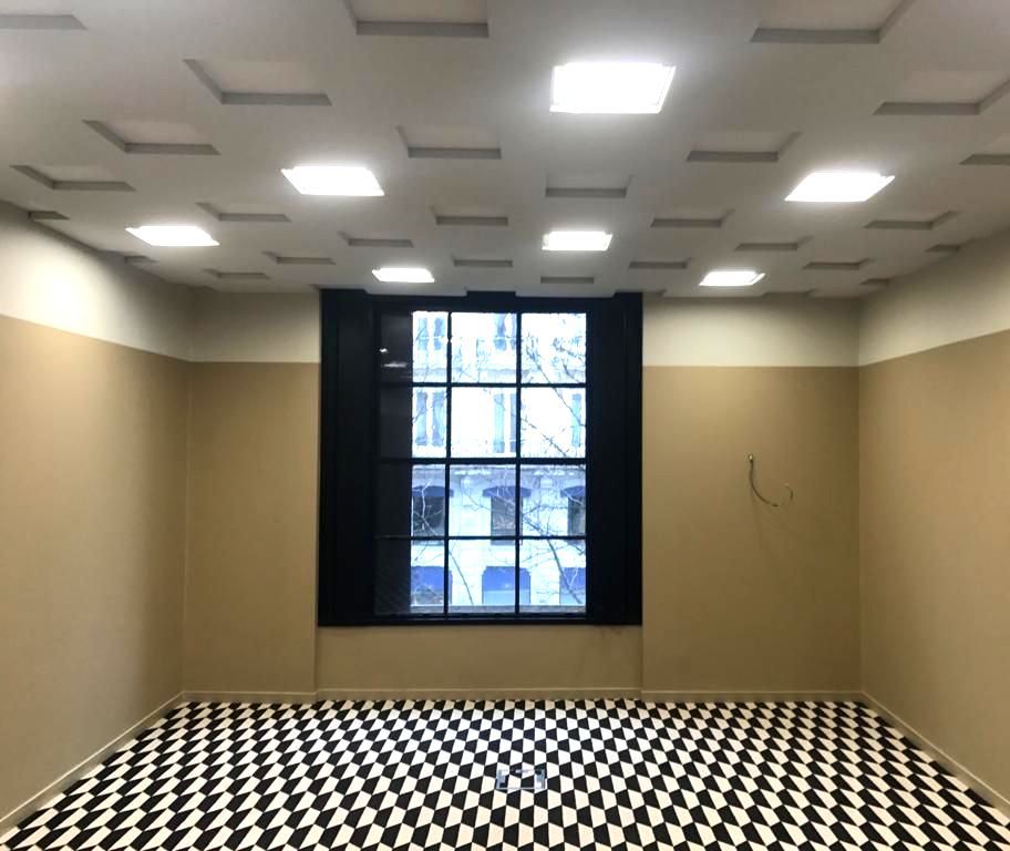 Réalisation des travaux de plâtrerie, faux-plafonds et peinture pour la rénovation de l'espace conférence de l'Hotel des Postes.